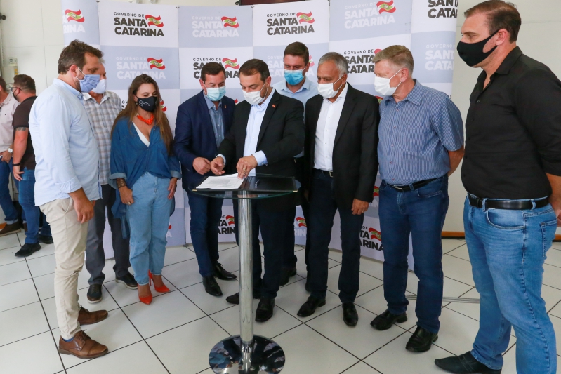 Participaram dos anúncios o chefe da Casa Civil, Eron Giordani,o secretário da Defesa Civil Aldo Baptista Neto, os deputados Celso Maldaner, Paulinha e Milton Hobus, o presidente do Badesc Eduardo Machado, a presidente da Casan Roberta dos Anjos, prefeito de Presidente Getúlio Nelson Virtuoso, vice-prefeito José Adalcio Krieger, prefeito de Rio do Sul José Thomé, vice-prefeita Karla Bastos Miguel, vereadores e lideranças da região.